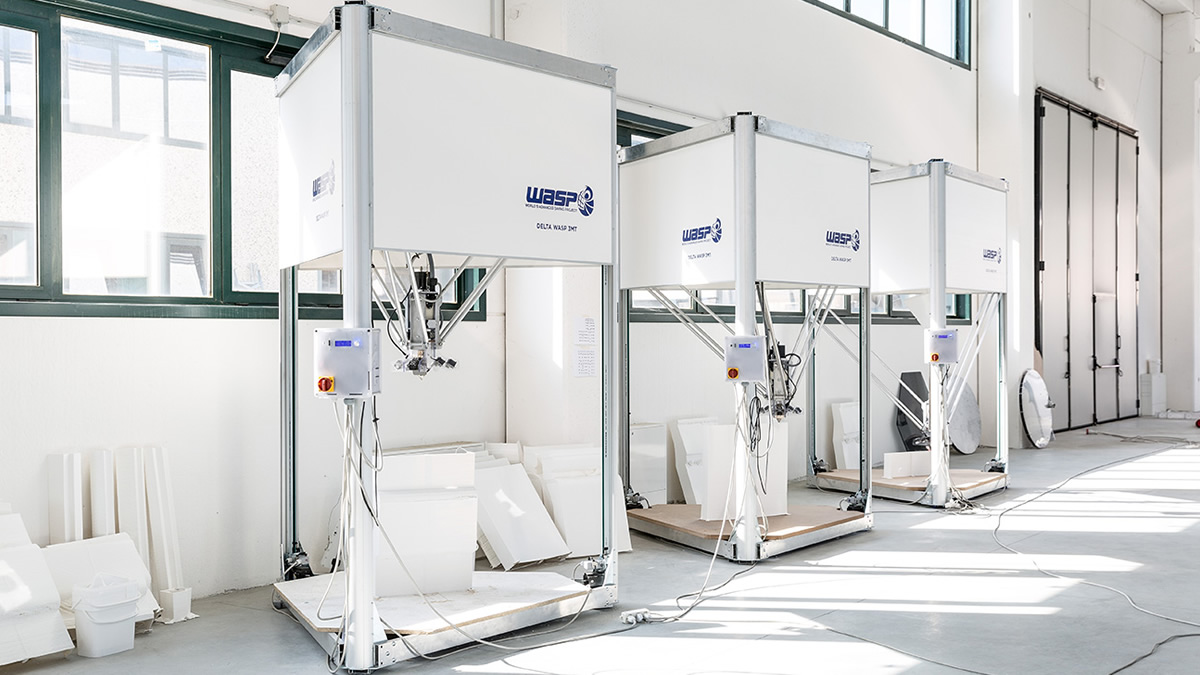 Le macchine utilizzate sono gigantesche stampanti 3D modulari e componibili.