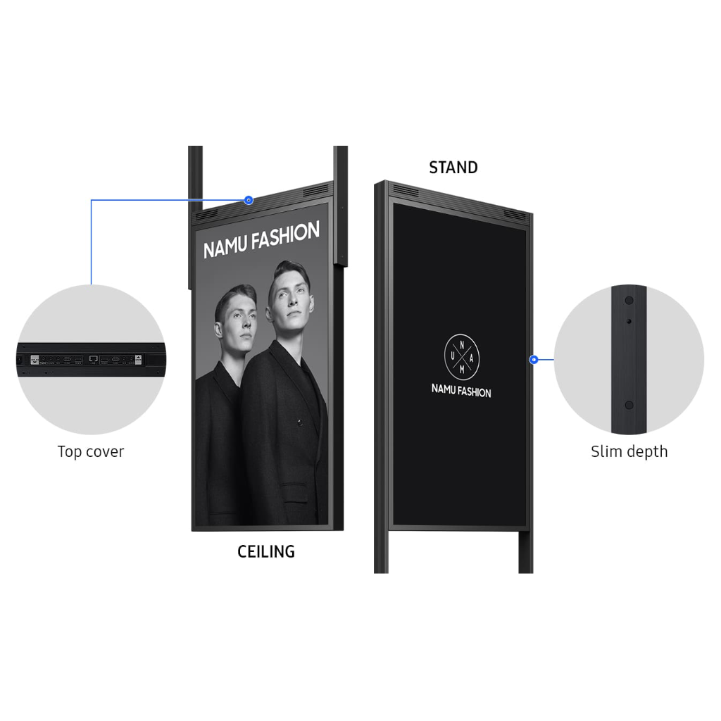 Samsung OM55N-DS Visual Display. Monitor da vetrina DUAL FACE full HD 55 pollici con luminosità di 3000 nit all'esterno.